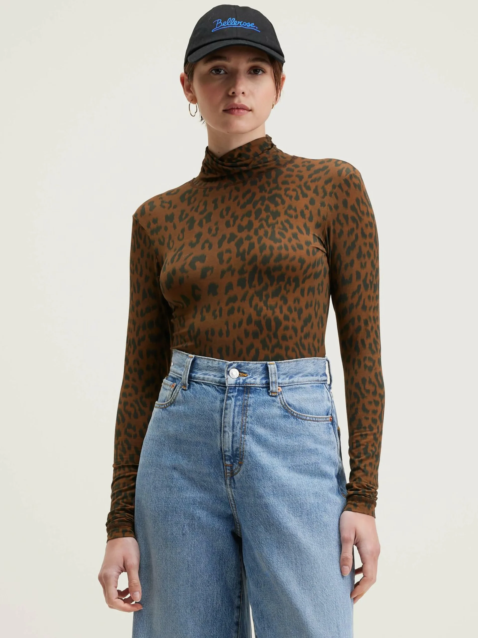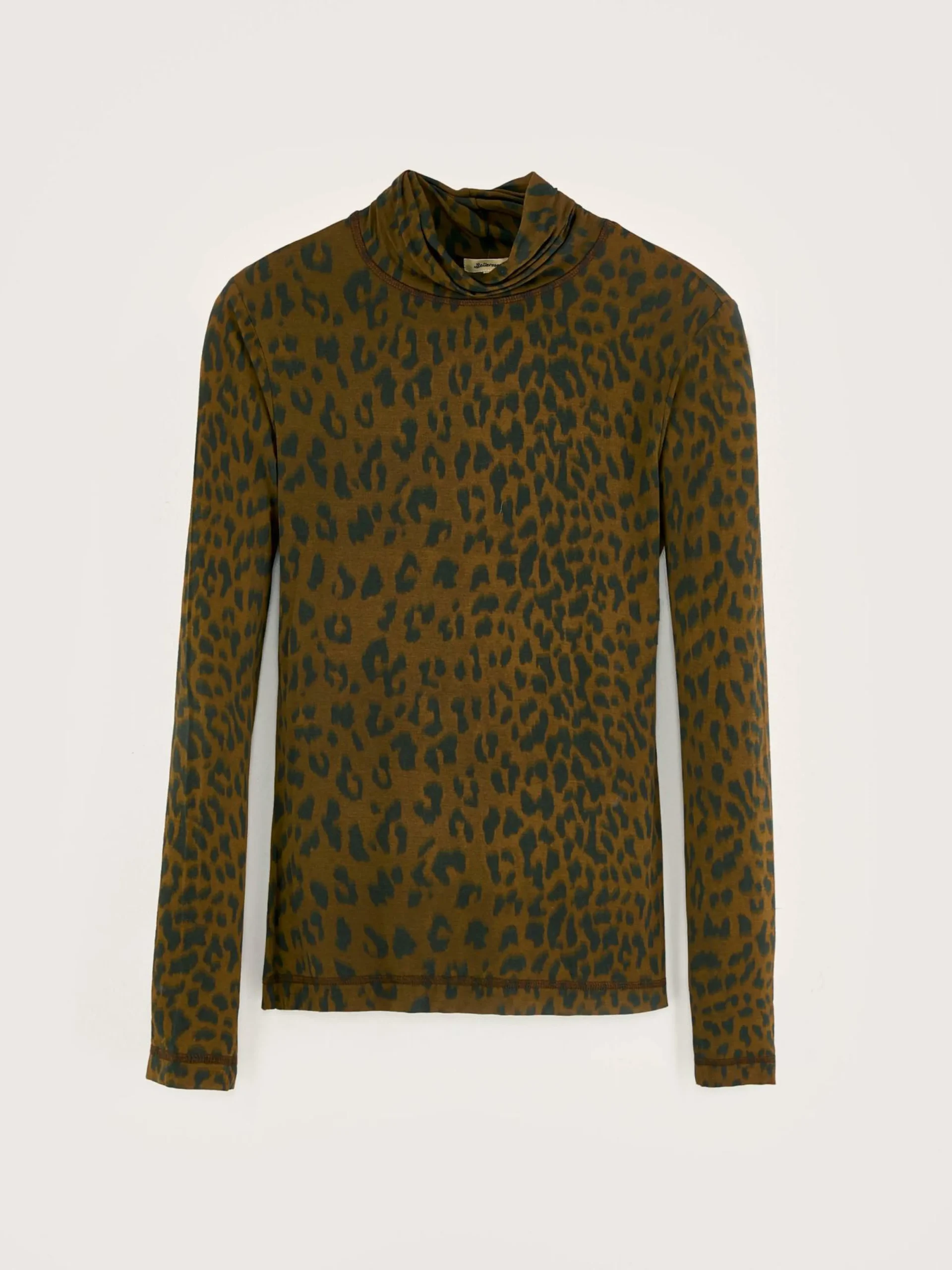 T-shirt à manches longues, coupe slim et col montant, en tissu effet seconde peau imprimé léopard.