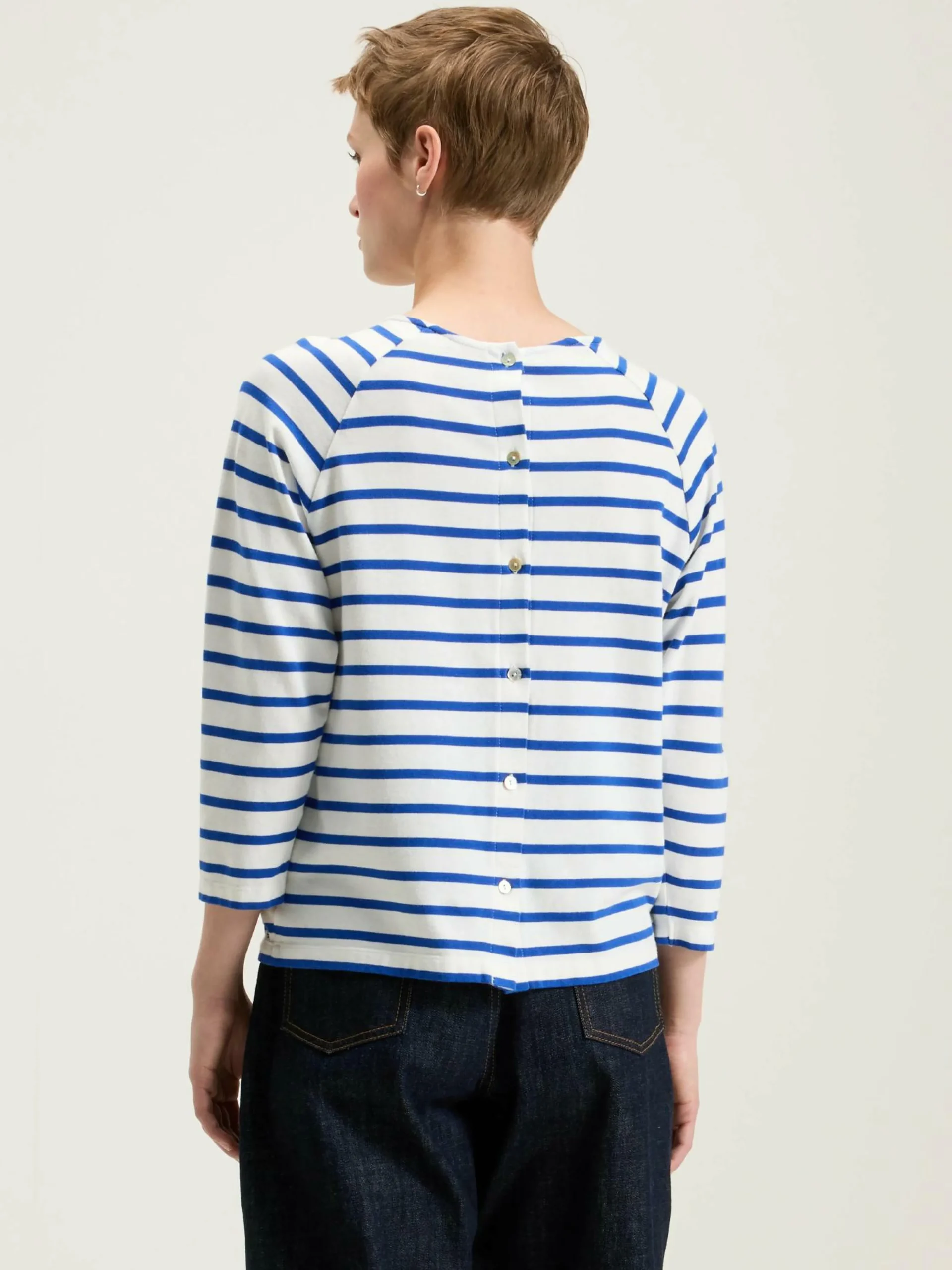 T-shirt classique à coupe ajustée avec col rond, manches raglan et bouton dans le dos, en jersey de coton rayé épais.