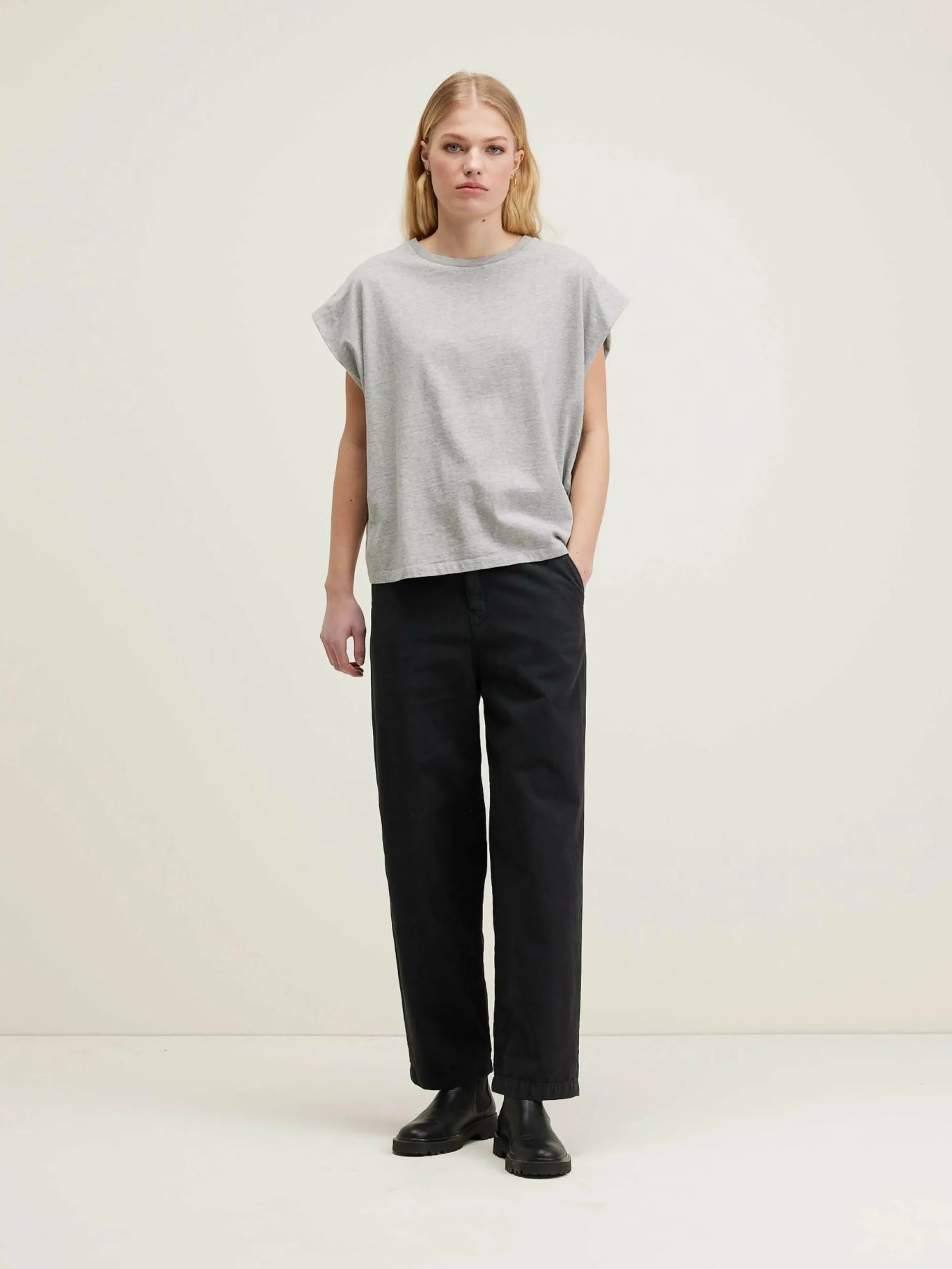 T-shirt avec épaules pliées et col rond en jersey de coton gris chiné.
