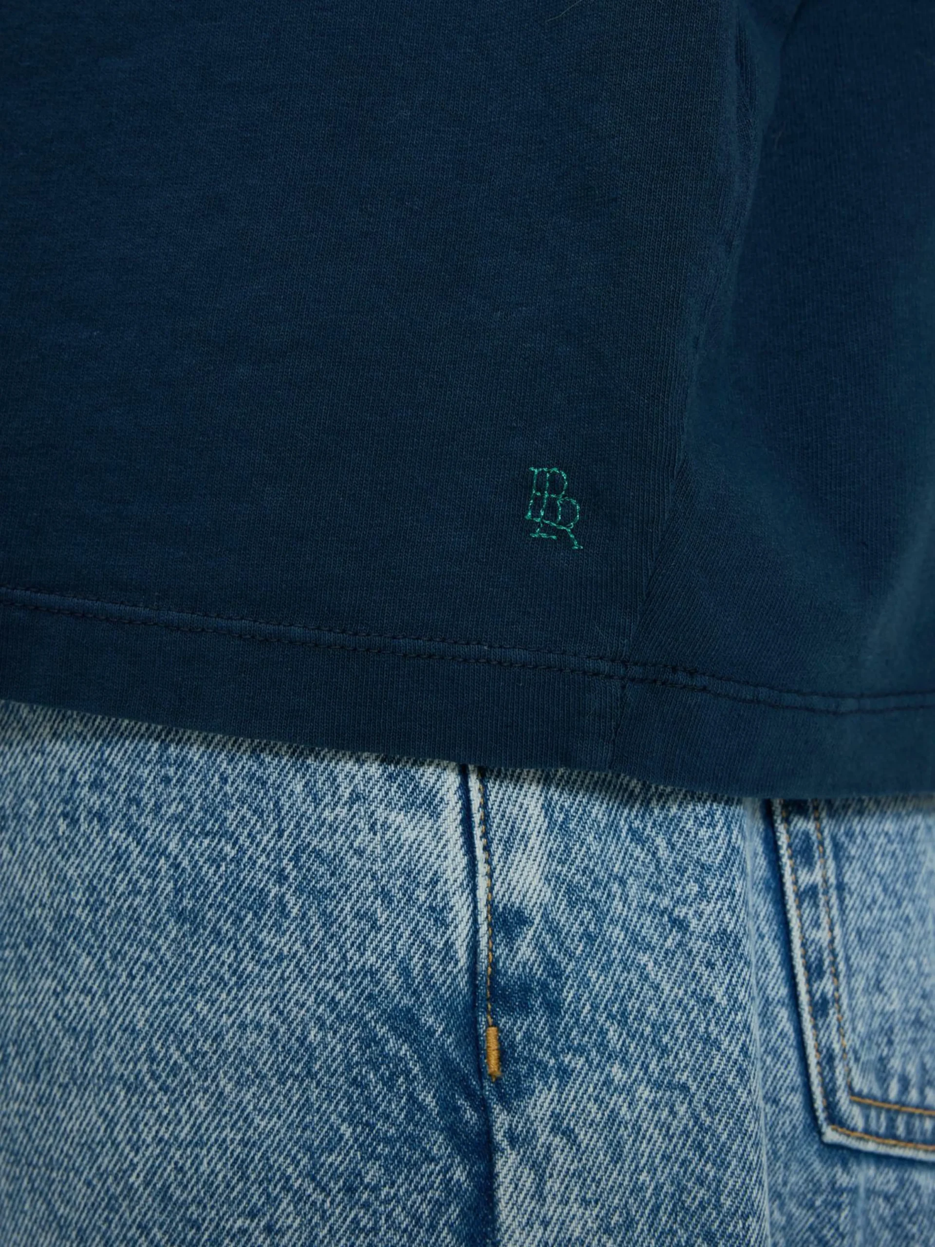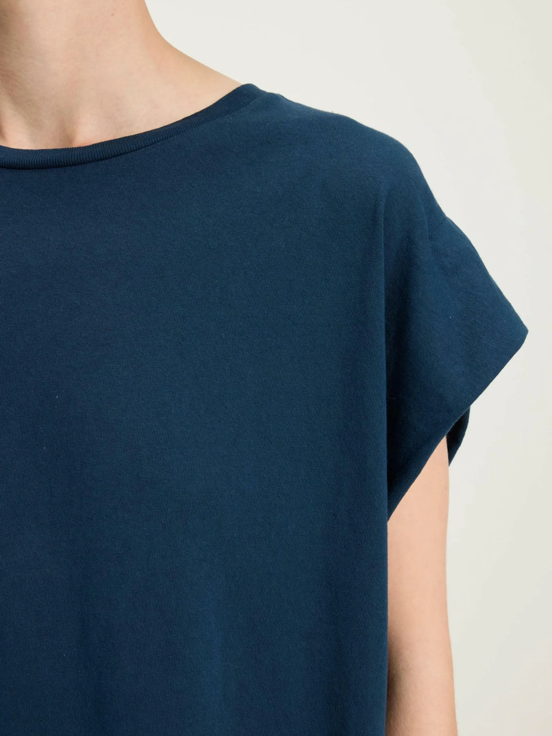 T-shirt avec épaules pliées et col rond en jersey de coton bleu encre.