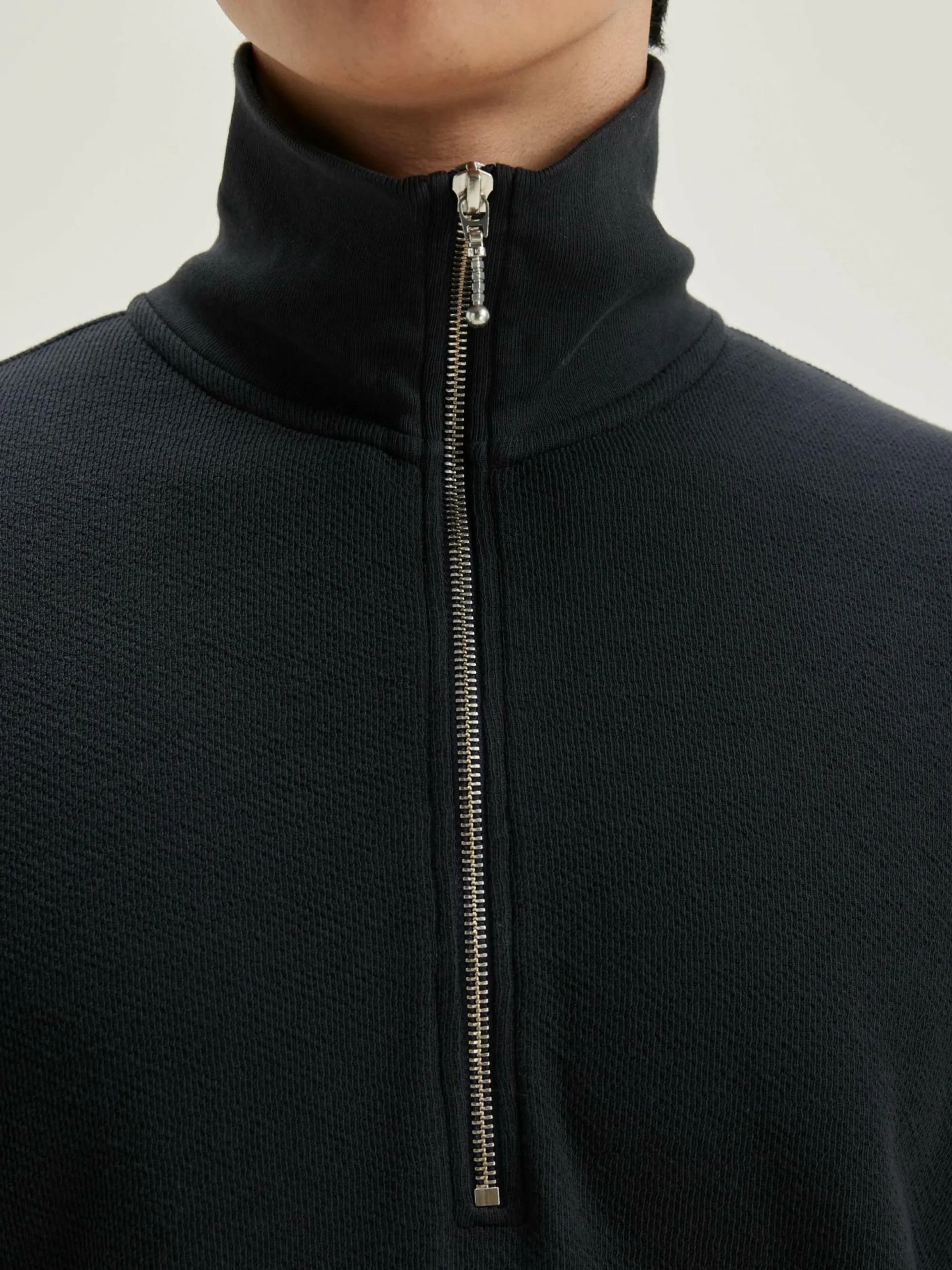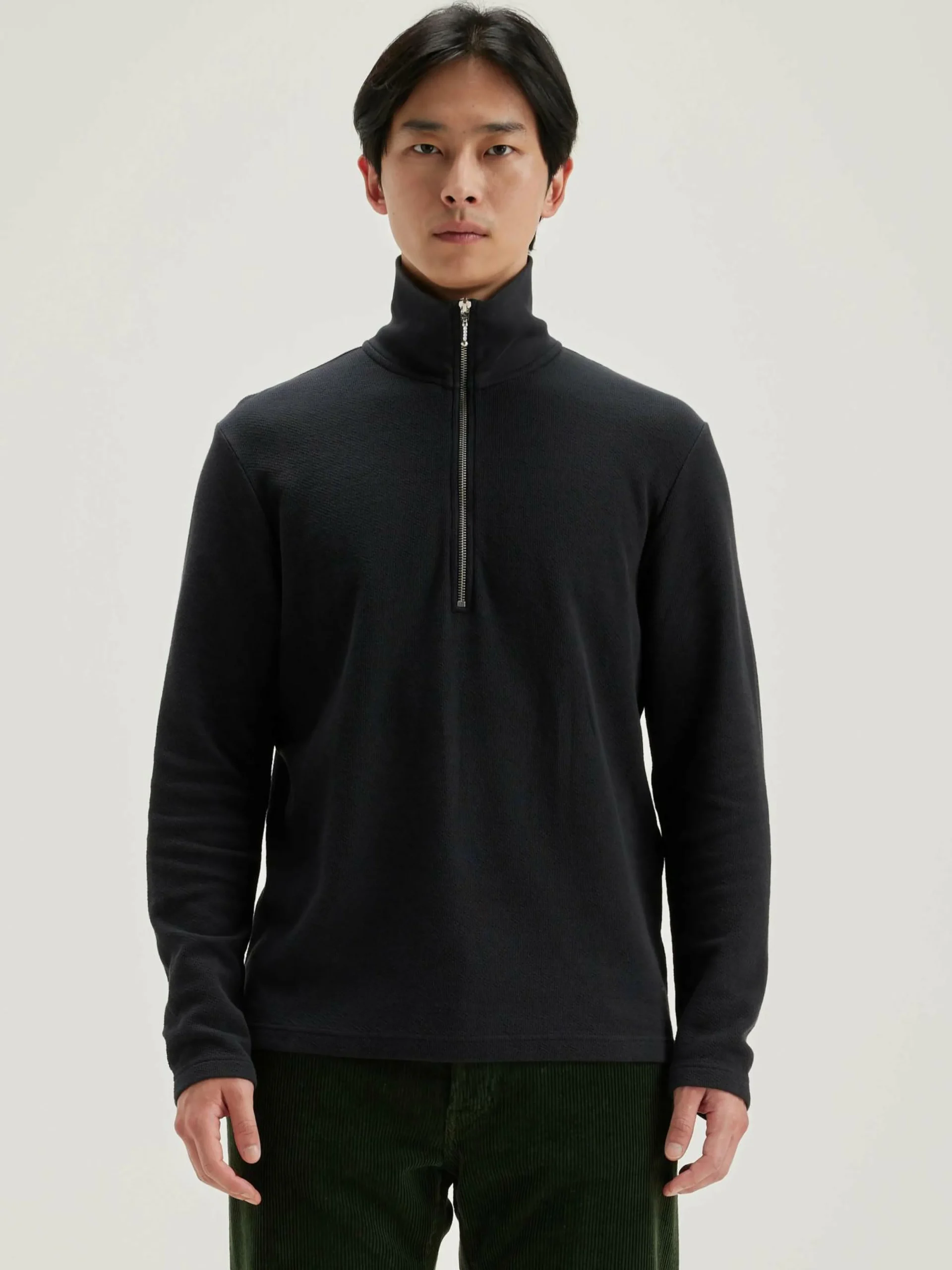 T-shirt classique à col zippé en jersey de coton double-face bleu marine.