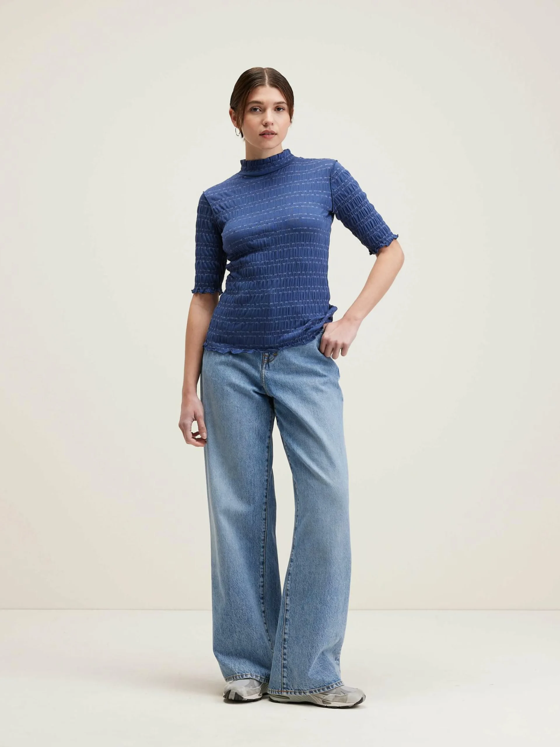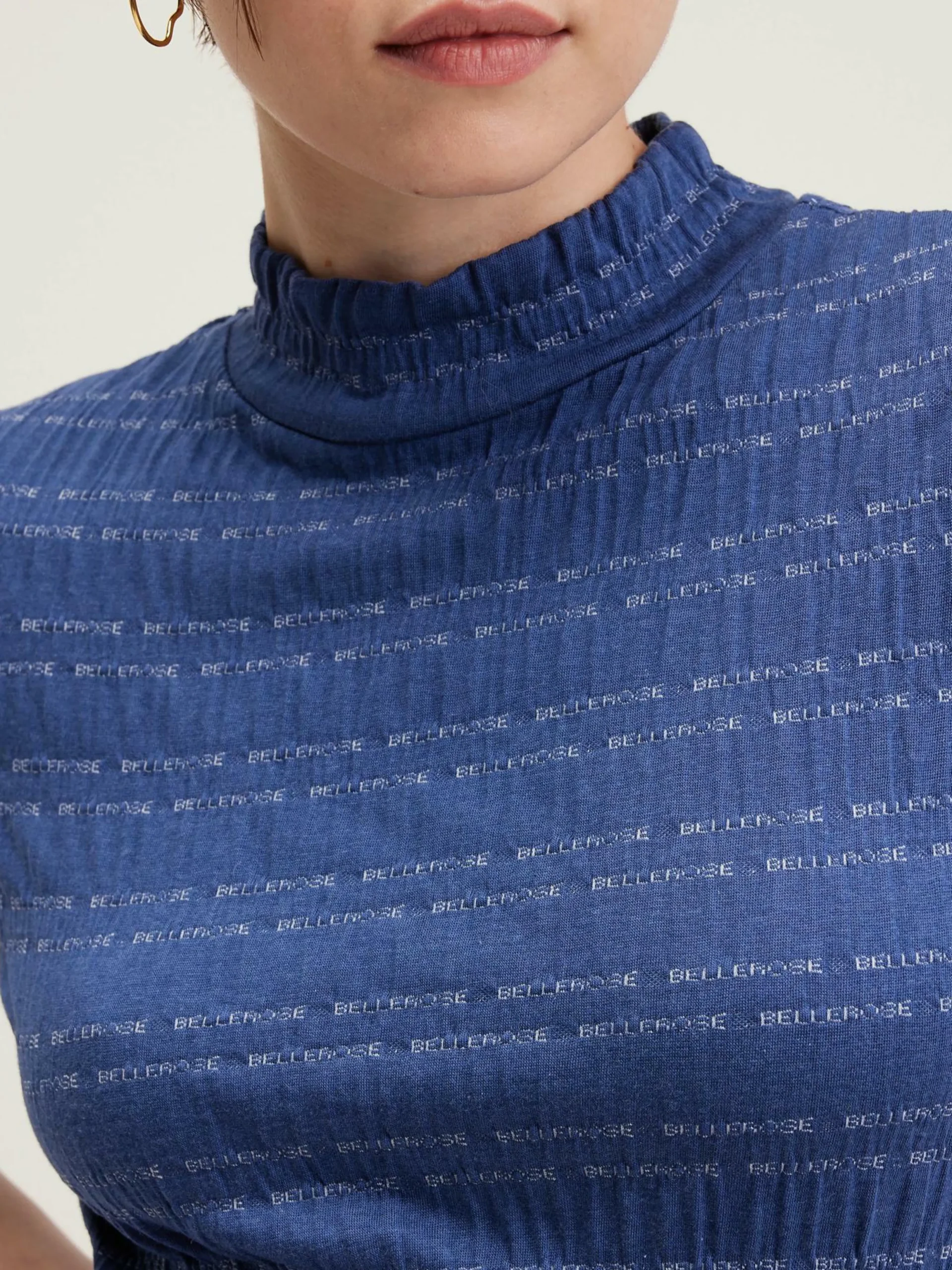 T-shirt slim bleu à manches 3/4, tissu à rayure mini logo Bellerose.