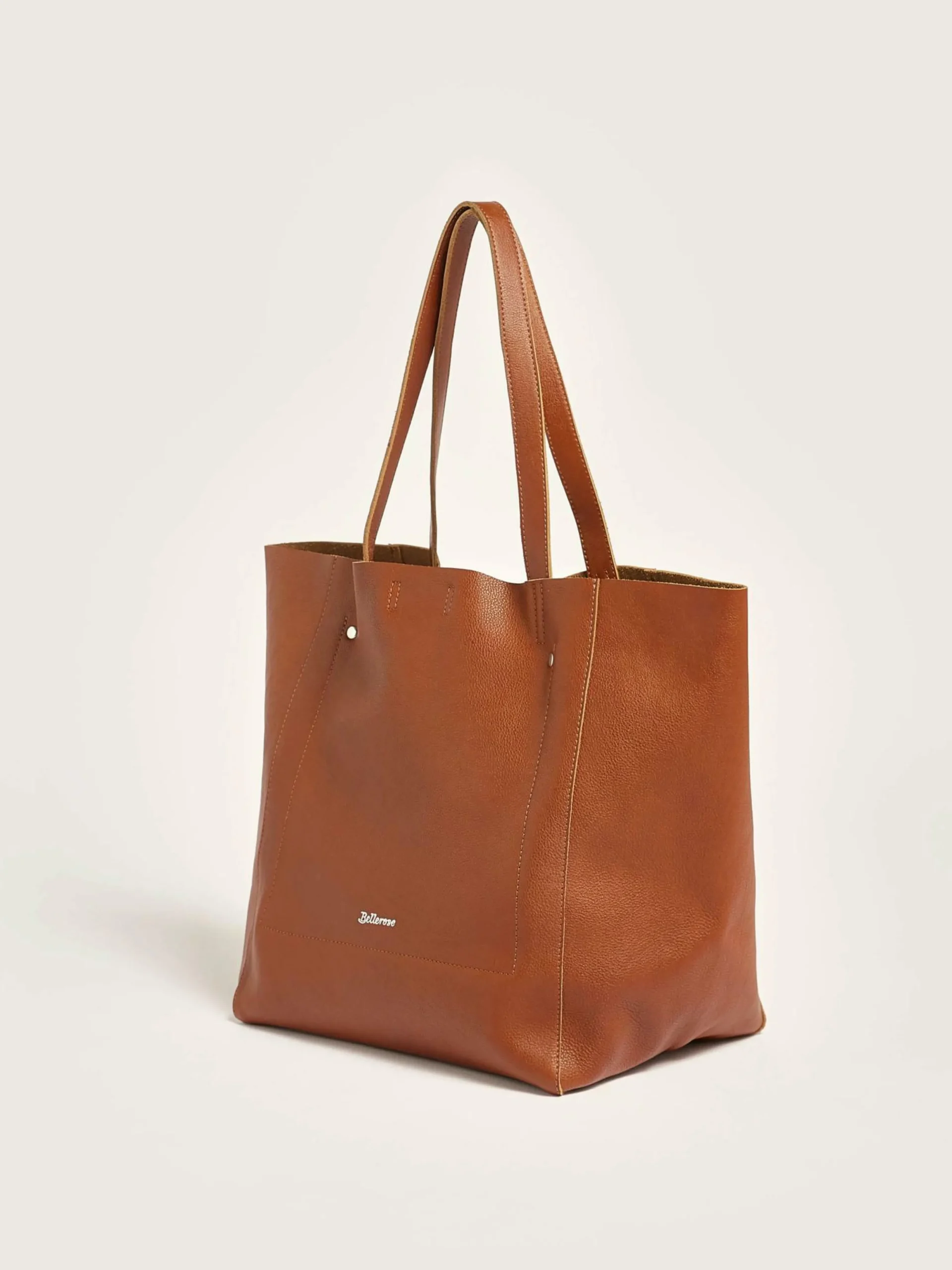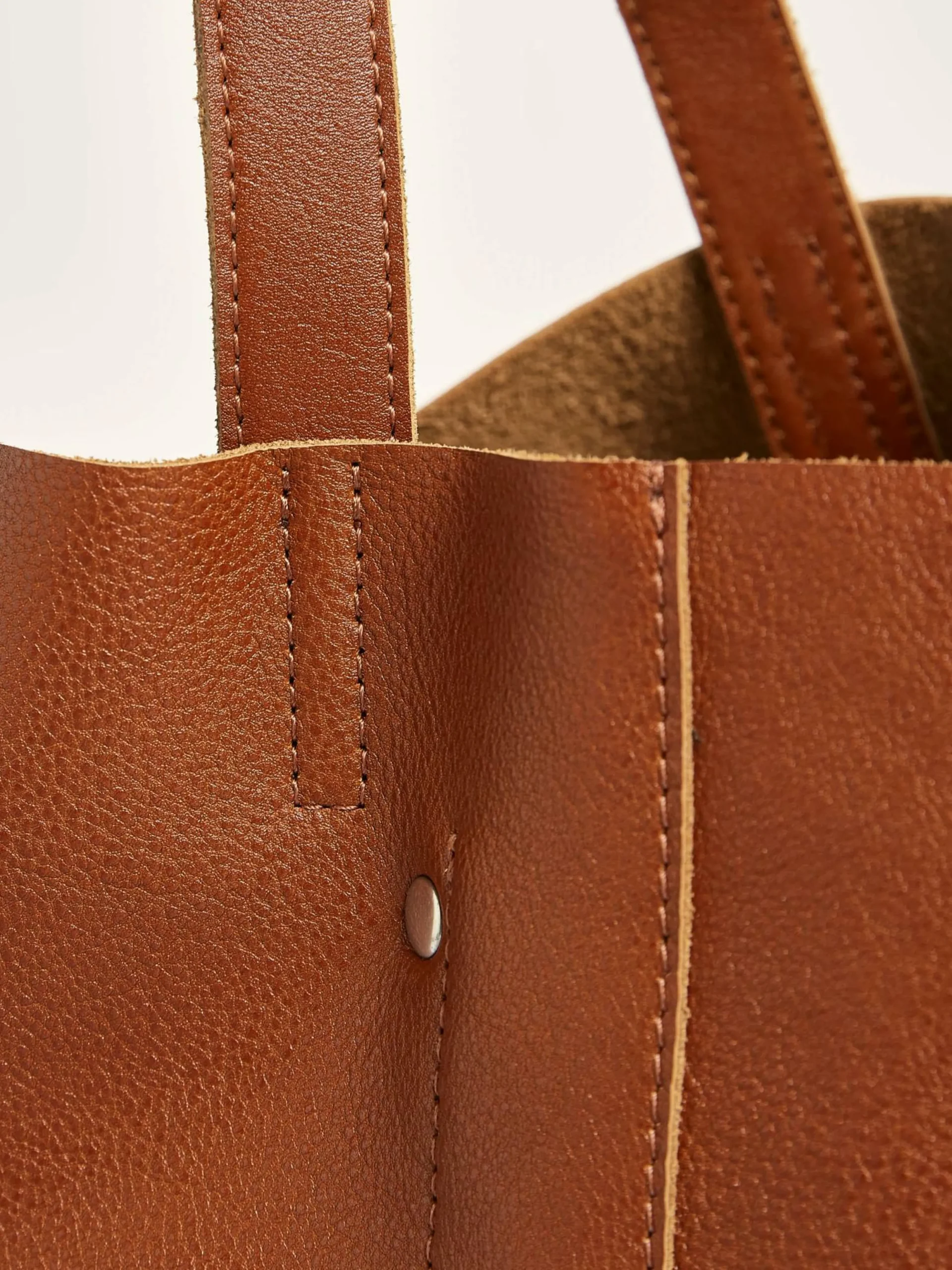 Sac fourre-tout rectangulaire en cuir couleur cognac.