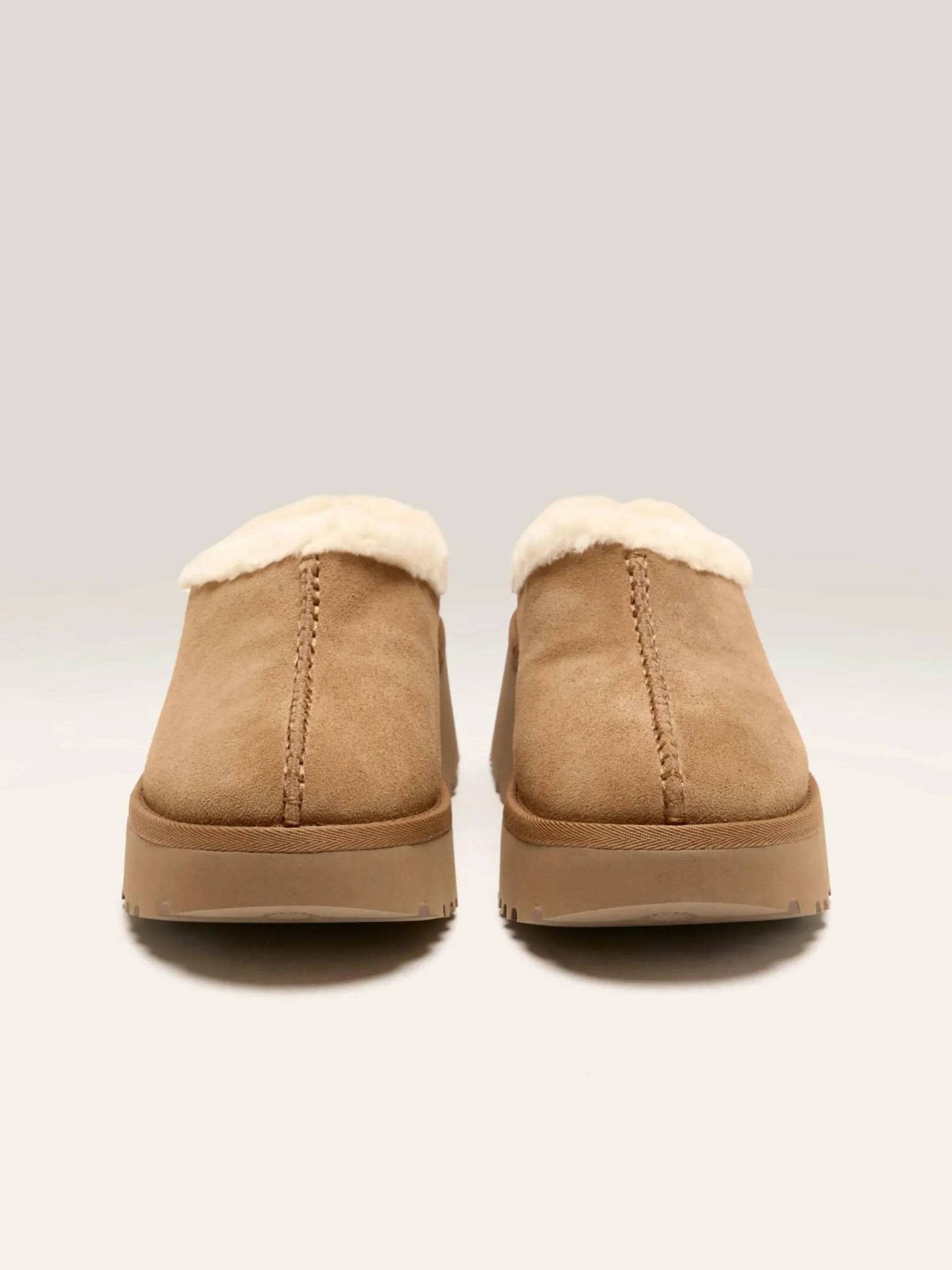 Les sabots UGG New Heights Cozy Clog sont dotés d’une doublure en mélange laine-lyocell recyclée, d’une tige en suède et d’une semelle légère en EVA.