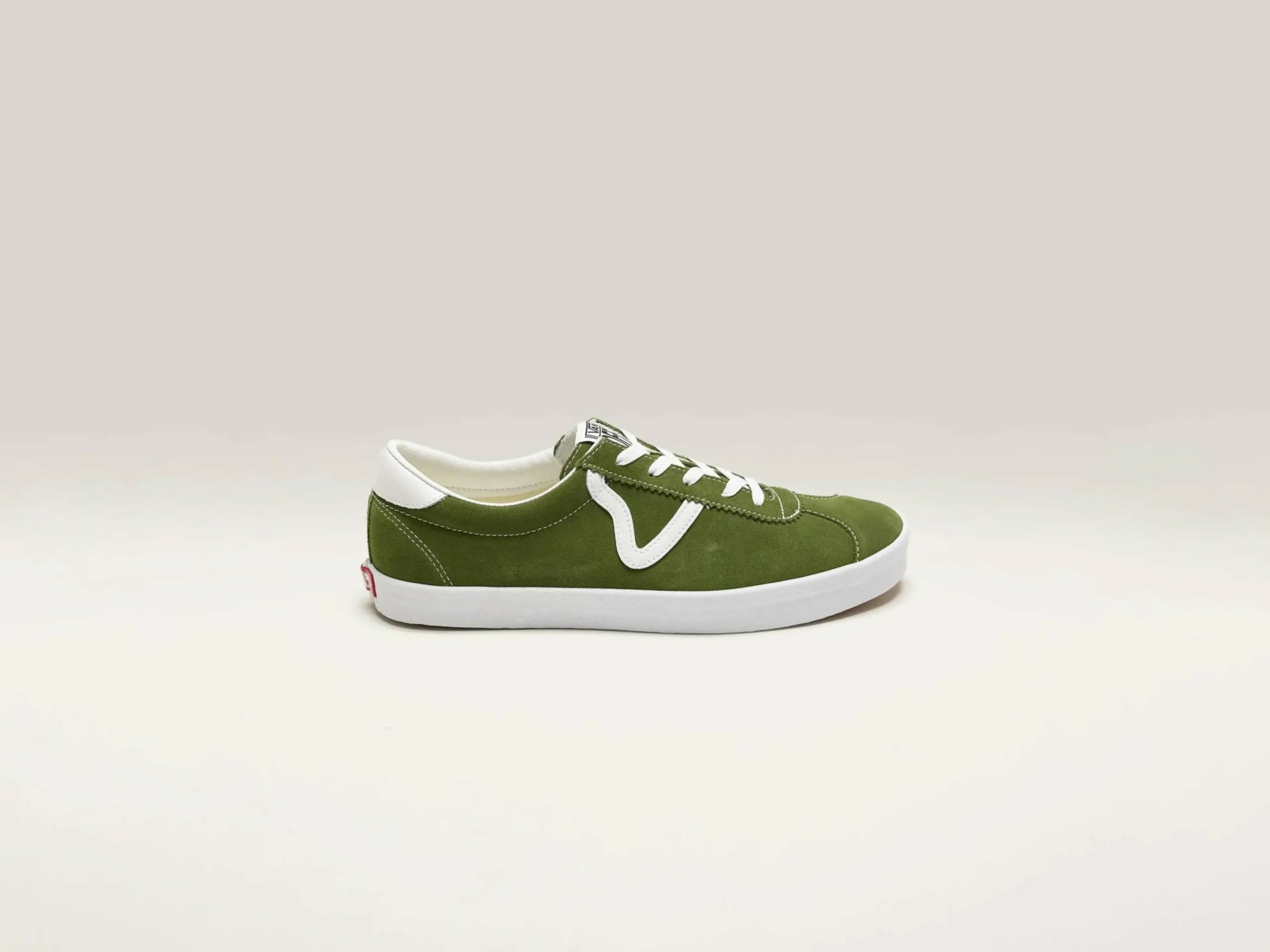 Les sneakers Vans Sport Low présentent un col bas ouvert, une tige en suède bicolore avec des accents en cuir, et une étiquette logo old-school.