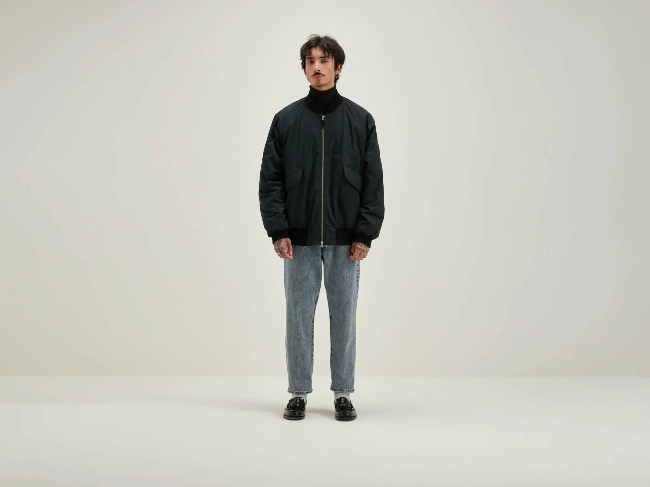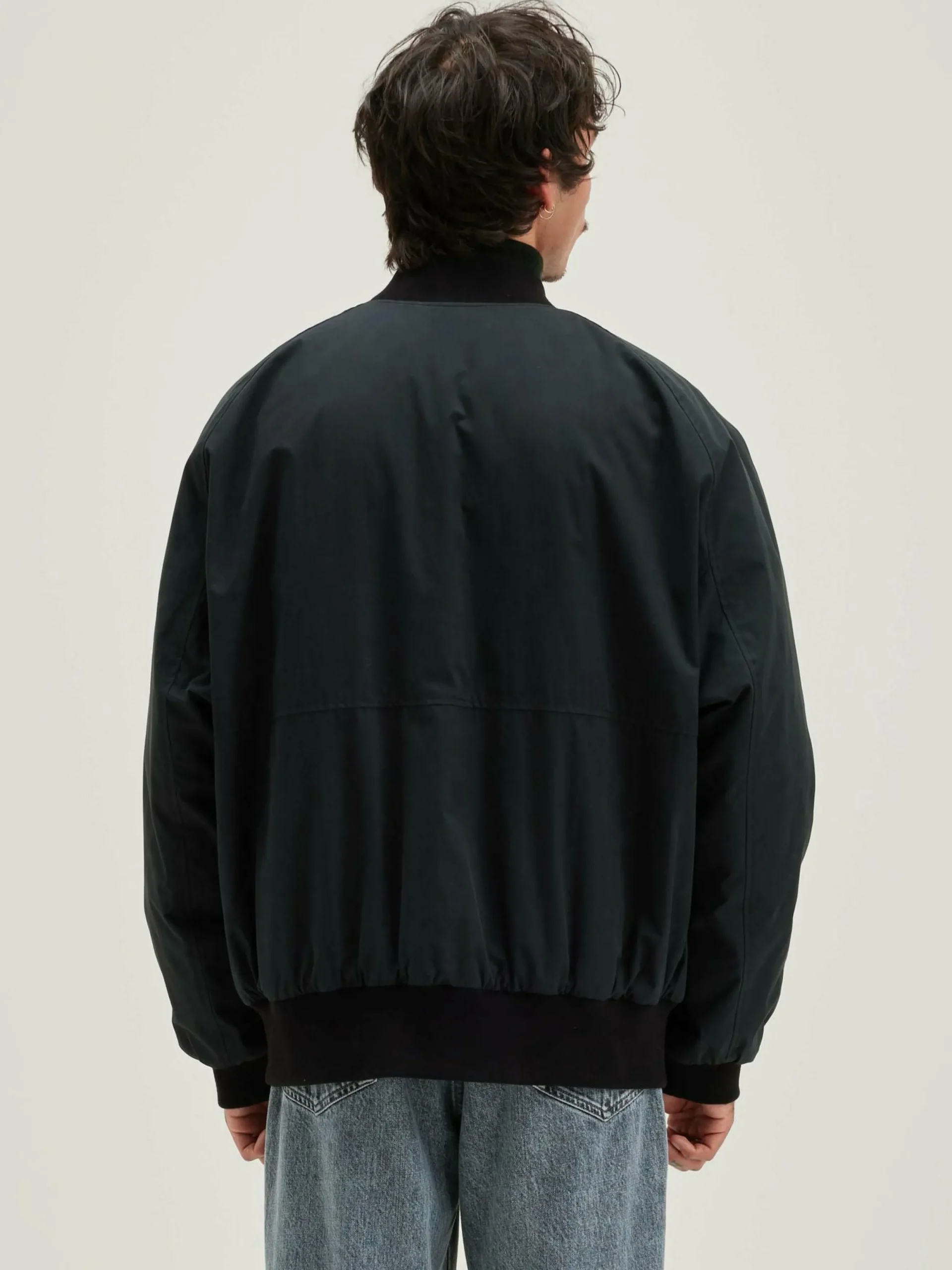Veste oversize style bomber en toile noire avec fermeture par zip et manches raglan.