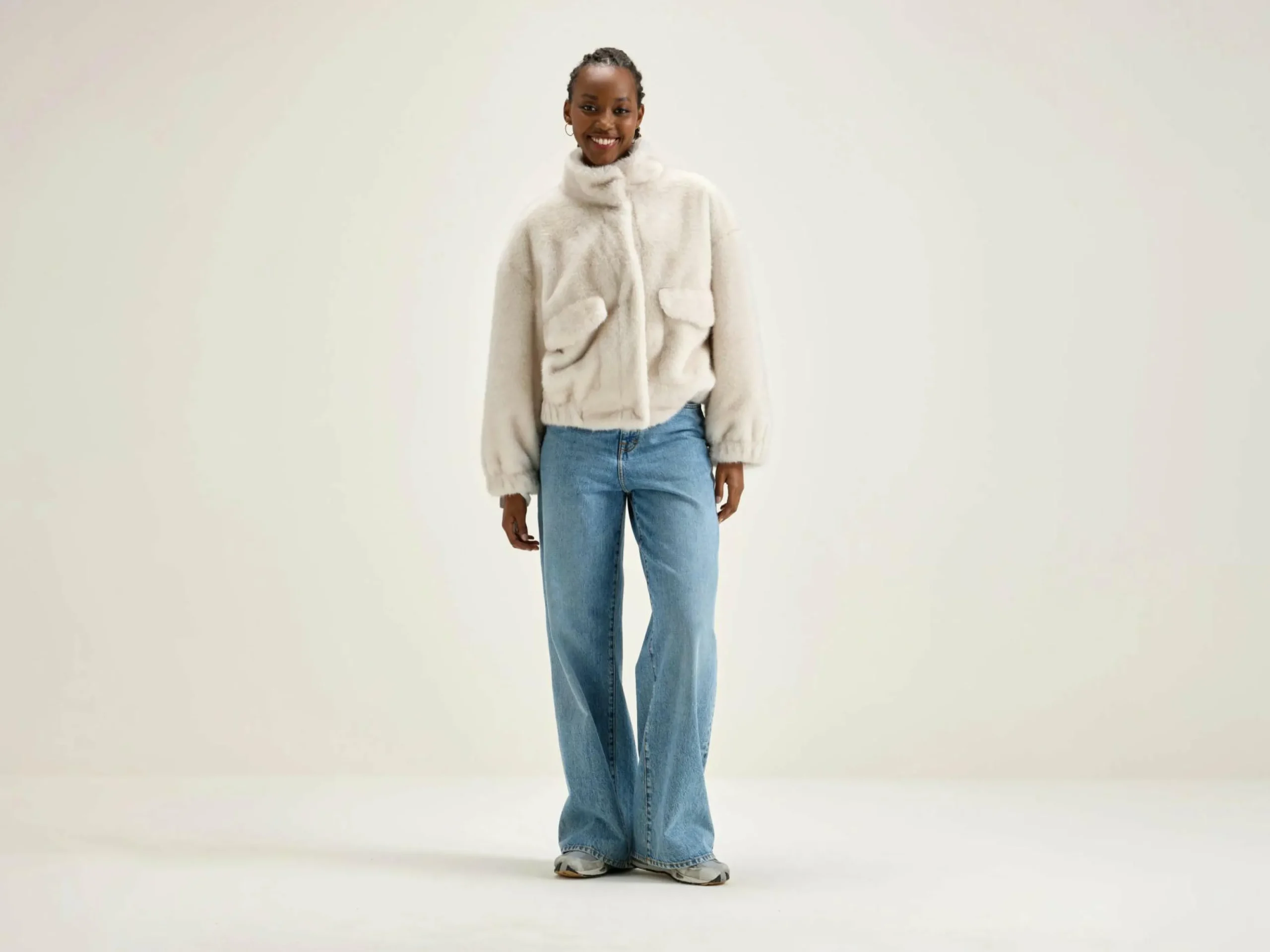 Veste courte en fausse fourrure avec poches à rabat en beige clair.