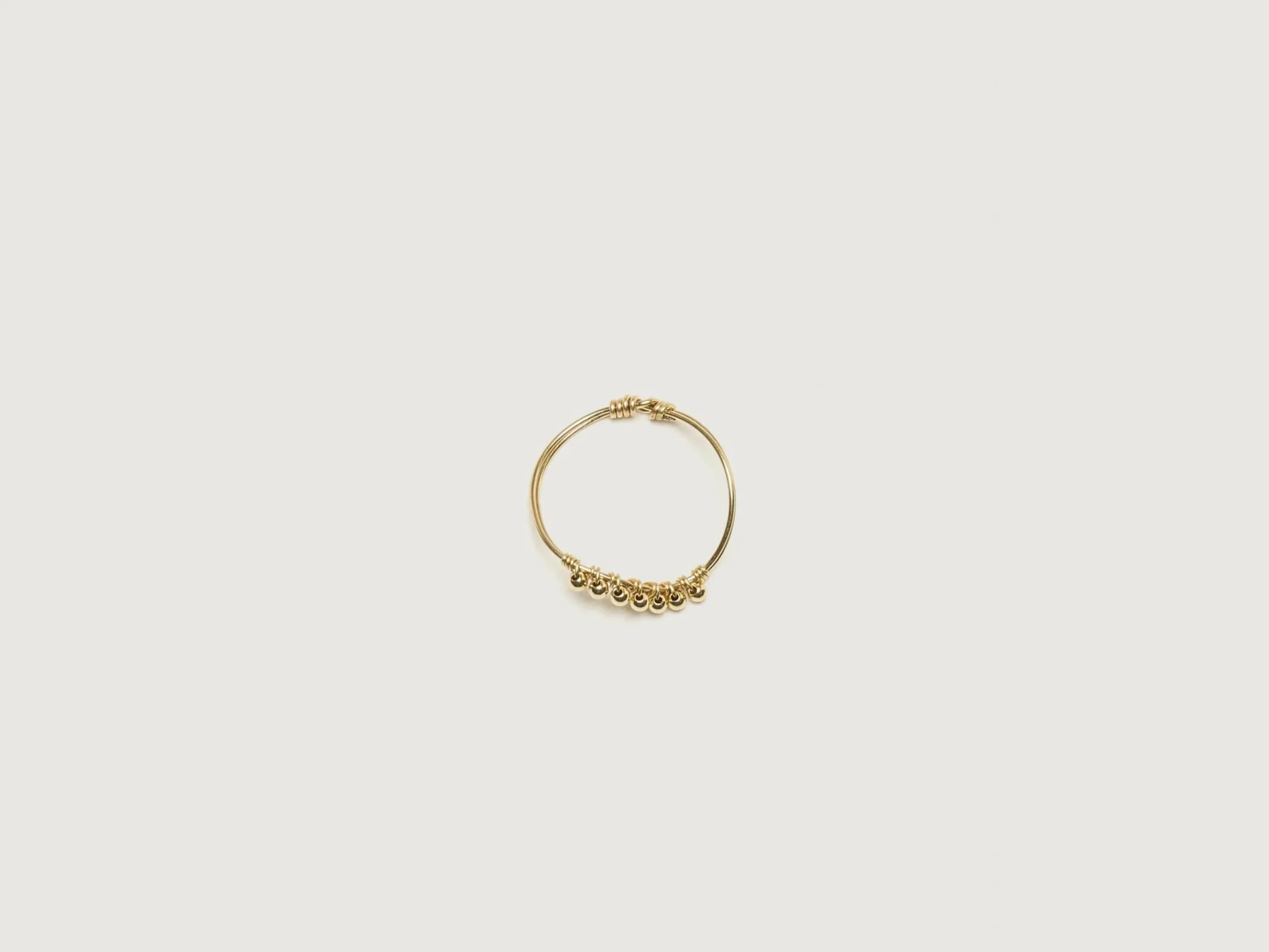 La bague Yay Sultane présente des mini perles dorées sur un double anneau en or 14k au design asymétrique.